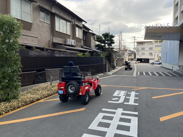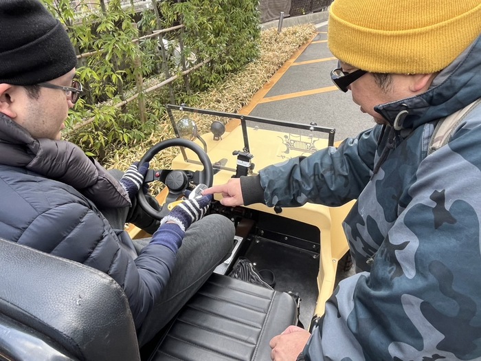 ホテルアマネク駐車スペースにて運転操作の説明と練習をします。